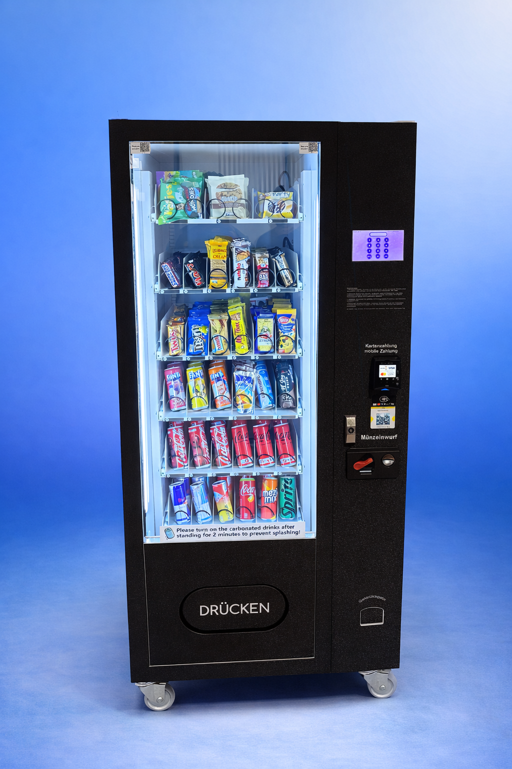 - Kartenzahlung über Nayax inkl. App-Steuerung sowie Bargeldzahlung (Münzen & Scheine)